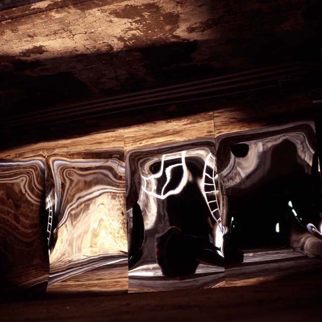 durch ein geöffnetes lüftungsloch steigt das publikum in das kellergewölbe unter dem park. ein spiegelszenario, das die herabsteigenden empfängt, noch während sie auf der leiter sind, überhöht die beklemmende verfassung des raumes in vielfacher verzerrung und verwickelt seine betrachter in eine abgründige komplizenschaft. die abartigkeit von systemen, ob nun raum- oder gesellschaftspolitischer art, lauert unmittelbar unter der ohnehin recht dünnen oberfläche ihres stabilen scheins von der schönen ordnung.